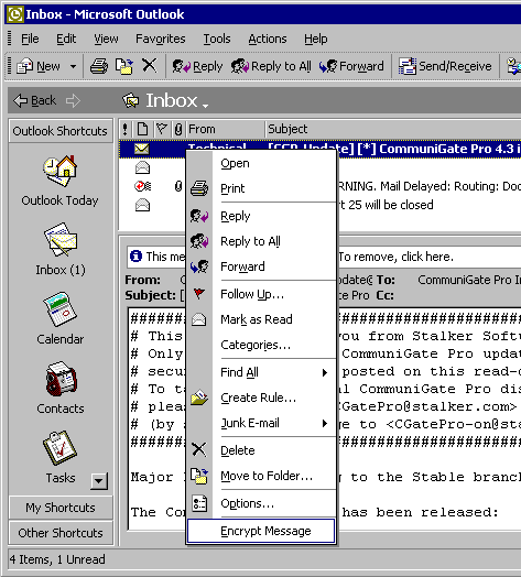 Because the standard Internet formats are used, messages stored with the CommuniGate Pro MAPI Connector